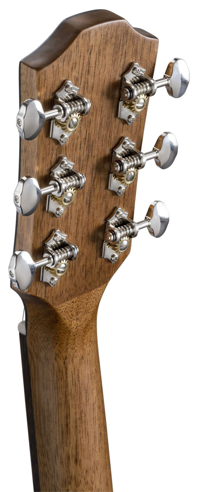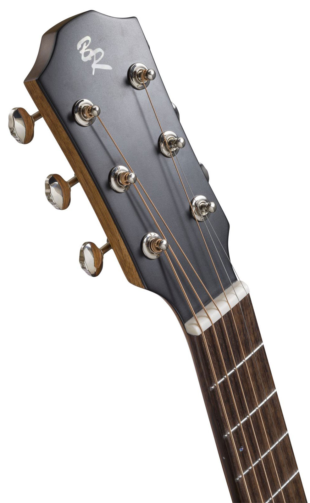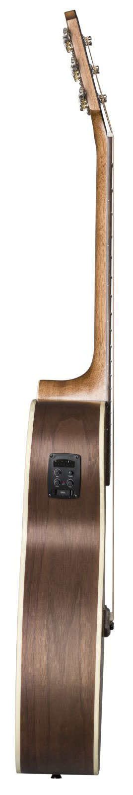 BATON ROUGE X34S/OMCE – электроакустическая гитара в корпусе типа OM с катавеем. Верхняя дека выполнена из цельной ели, нижняя дека и обечайка – из ореха. Гриф изготовлен из окуме, накладка на гриф и сам бридж – из лавра. У гитары 21 лад, а верхний и нижний порожек (46 мм) выполнены из кости.