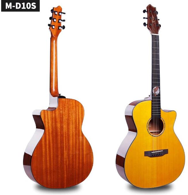 Модель MD-10S - это крупный "дредноут" с ровным динамическим диапазоном, выполненный из массива ели и красного дерева. Глубокий вырез на корпусе облегчает доступ к верхним позициям грифа. Колковая механика типа Roto закрытого типа и каменные порожки обеспечивают долговечность и удобство использования.