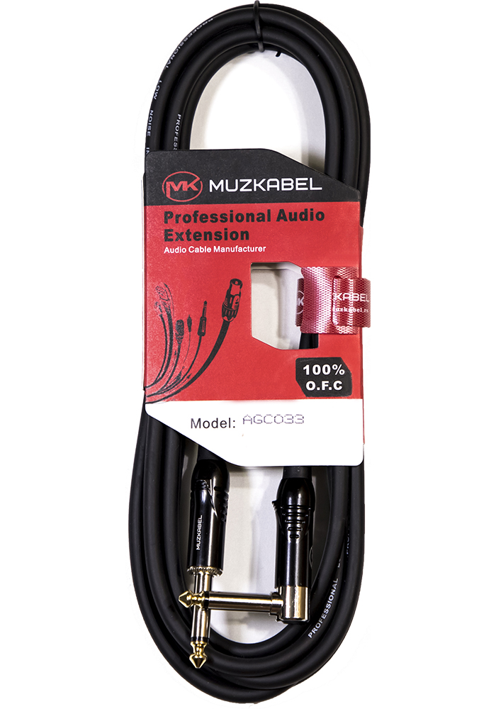 Шнур AGC03 оснащен разъемами MuzKabel JACK (моно) - JACK (моно) с позолоченными контактами, что гарантирует стабильный и качественный звук. Емкость П/Э равна 60 Пф/м, оболочка выполнена из ПВХ, а внешний диаметр составляет 6,1 мм. Шнур AGC03 доступен в классическом черном цвете.