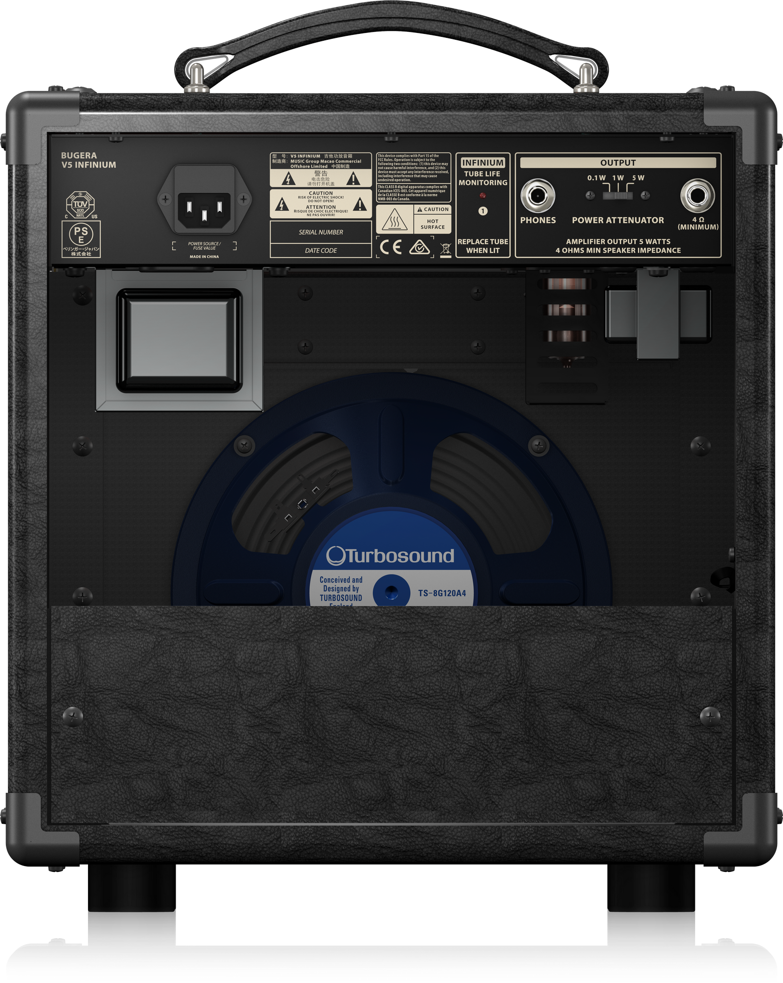 Долговечность и надежность – гарантированы! Благодаря высококачественным компонентам и исключительно прочной конструкции. V5 INFINIUM предоставляет удивительный тон самых почитаемых классических ламповых усилителей в сочетании с винтажным класса-А дизайном, невероятным TURBOSOUND динамиком, магической технологией INFINIUM и с полной регулировкой мощности. Независимо от того, хотите ли Вы вернуть к жизни золотой тон прошлого или создать свой собственный неповторимый - V5 INFINIUM станет Вашим новым вдохновением.Особенности