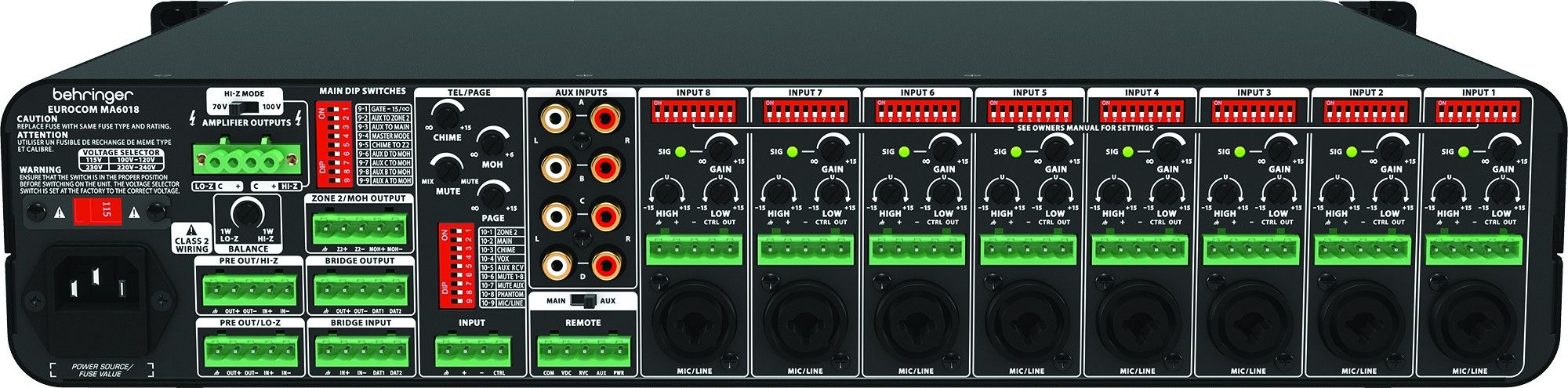 - Многофункциональные усилители-микшеры с выходной мощностью 180 Ватт (MA6018) и 80 Ватт (MA6008) с выходами на высокоомную нагрузку для напряжения сигнала 70/100В и на низкоомную нагрузку 4 Ом предназначены для непрерывной работы в системах распределенного звучания, вставки голосовых сообщений и в аудио-видео системах