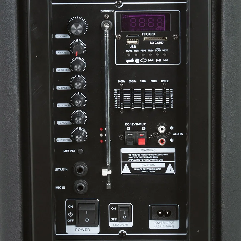 Интерфейс подключения / Разъемы: Bluetooth, AUX, MicroSD, USB, FM, Jack 6.3 мм (микрофон, гитара) 2 шт, Audio input 2х канальный