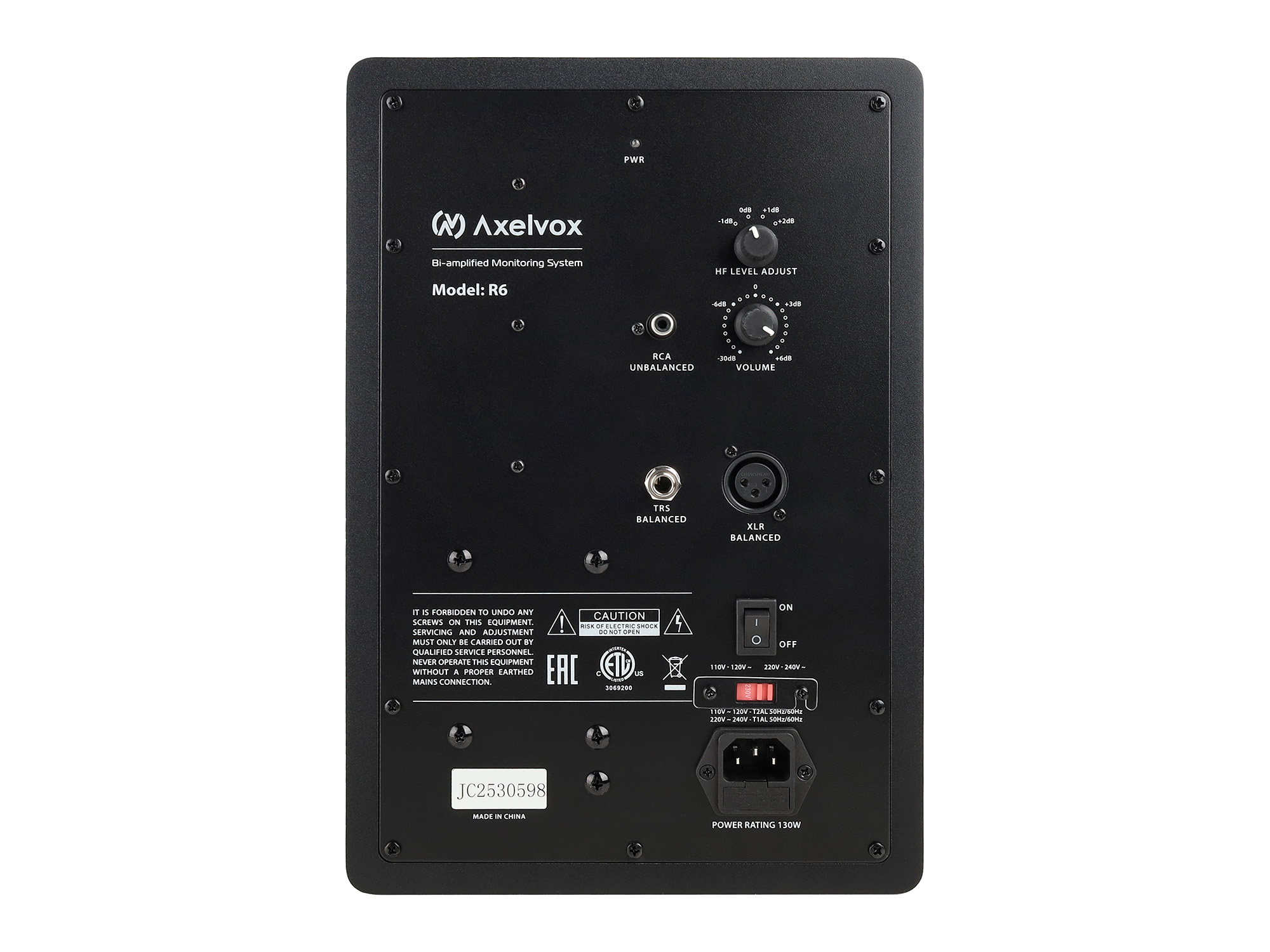Коммутация включает балансный вход XLR, балансный ¼″ Jack TRS и небалансный RCA. Для тонкой настройки ВЧ доступна ручная регулировка с шагом в 1 дБ на задней панели. Также есть фильтр низких частот на уровне 50 Гц.