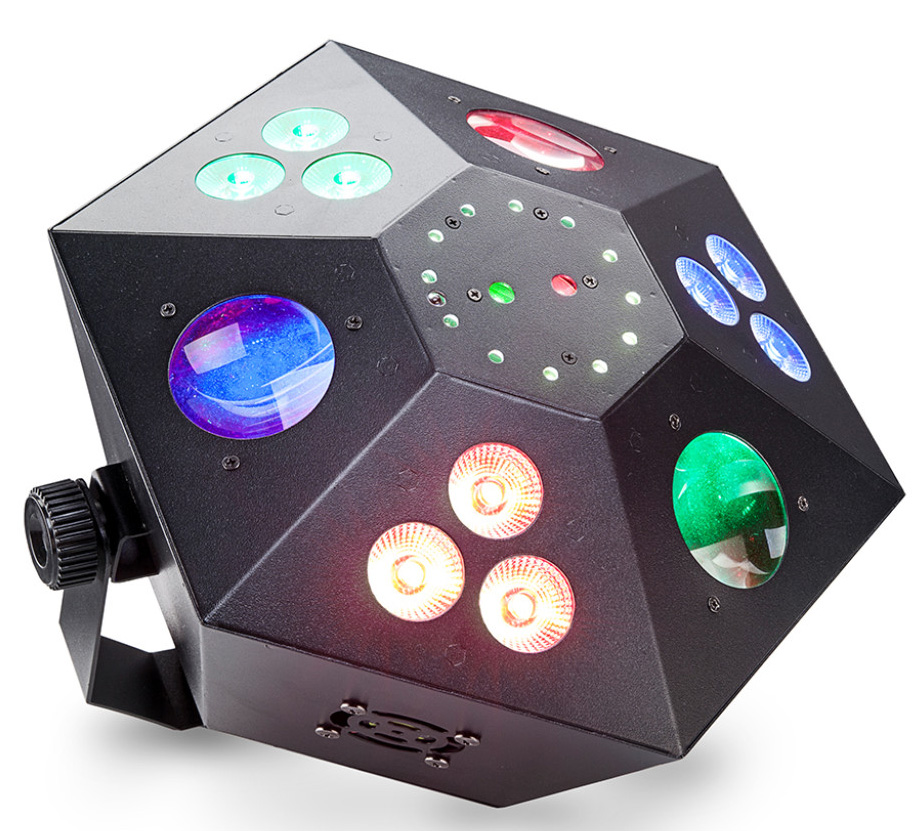 Бокс мульти-эффектов с красными и зелеными лазерами, 3-цветной заливкой, стробоскопом и светодиодным цветком