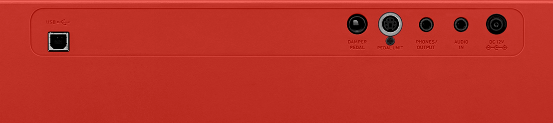 Разъемы: PHONES / OUTPUT: 1 (стерео мини джек), разъем для педали: 1 (демпфер), разъем для 3-педального блока: SP-34, CS-470P, разъем AUDIO IN, USB типа B