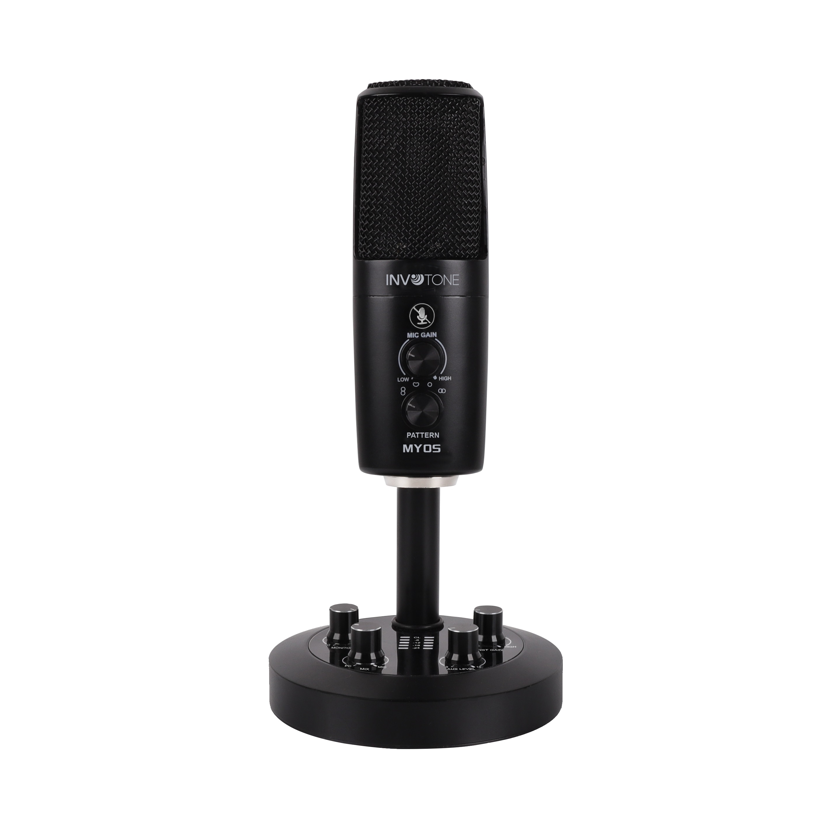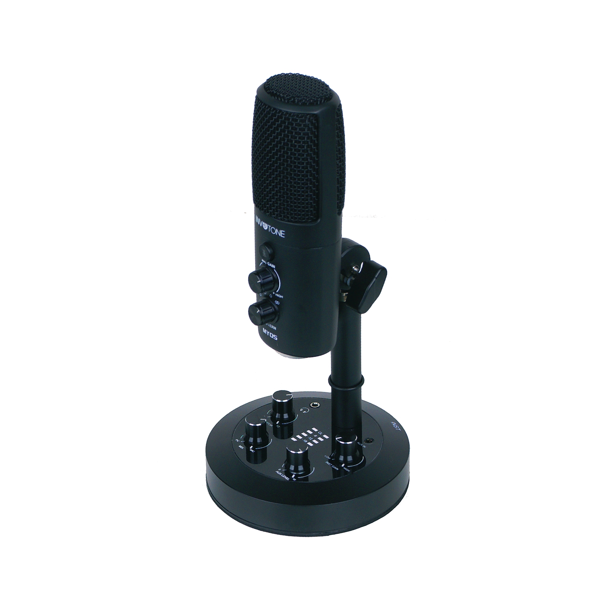 Микрофон представляет собой полноценный аудиоинтерфейс с 2 аудио входами (AUX и Instrumental). Энкодер PC/MIC позволяет 'подмешивать' к прямому сигналу микрофона сигнал с Вашего PC, тем самым, Вы можете обойтись без внешнего микшера и управлять сигналами непосредственно с интерфейса микрофона.