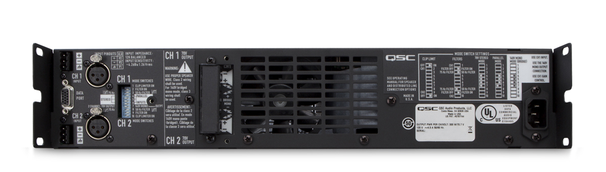 На тыловой панели QSC CX902, помимо вентиляционных отверстий, располагаются входные разъемы на Euroblock и XLR, которые позволят подсоединять разнообразные источники и выходные разъемы на клеммах, прикрытые заглушкой. Также там можно найти 15-пиновый разъем HD15 для управления по сети и мониторинга и набор DIP-переключателей, которые управляют работой встроенных лимитеров, ВЧ-фильтров и мостовых режимов. В целом данный усилитель представляет собой идеальный выбор для мобильного, турового и концертного применения, он обеспечивает высокую мощность выходного сигнала, сохраняя при этом малый вес и отличную функциональность.