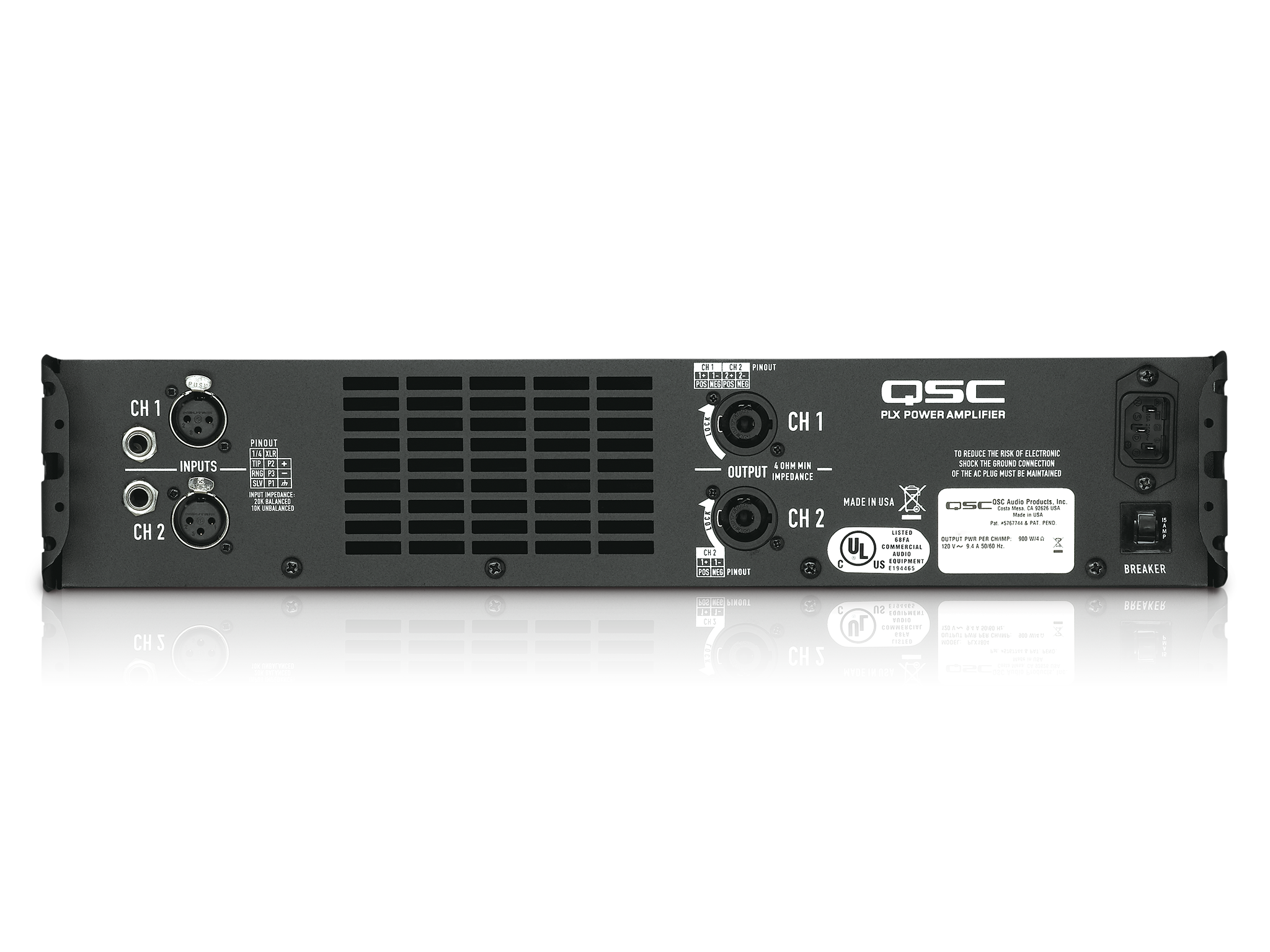 На тыловой панели QSC PLX1104, помимо вентилятора, располагаются основные входные разъемы на 1/4" TRS Jack и XLR, которые позволят подсоединять разнообразные источники, выходные разъемы на Speakon, а также вентиляционные отверстия. В целом данный усилитель представляет собой идеальный выбор для мобильного, турового и концертного применения, он обеспечивает высокую мощность выходного сигнала, сохраняя при этом легкий вес и отличную функциональность.