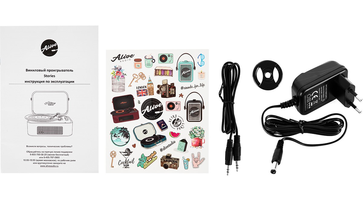 Комплект поставки: Проигрыватель, адаптер питания 220 В, адаптер на 45 оборотов