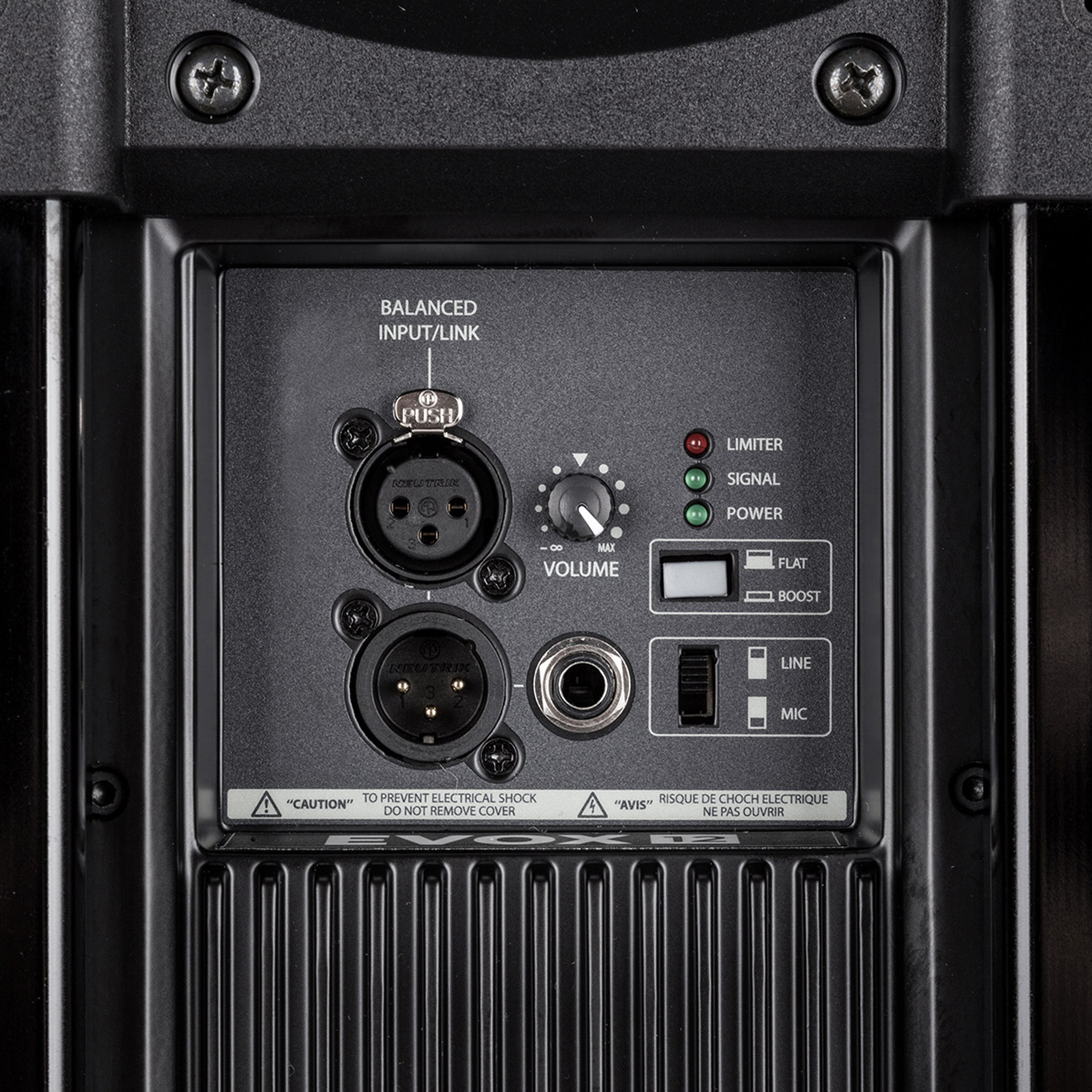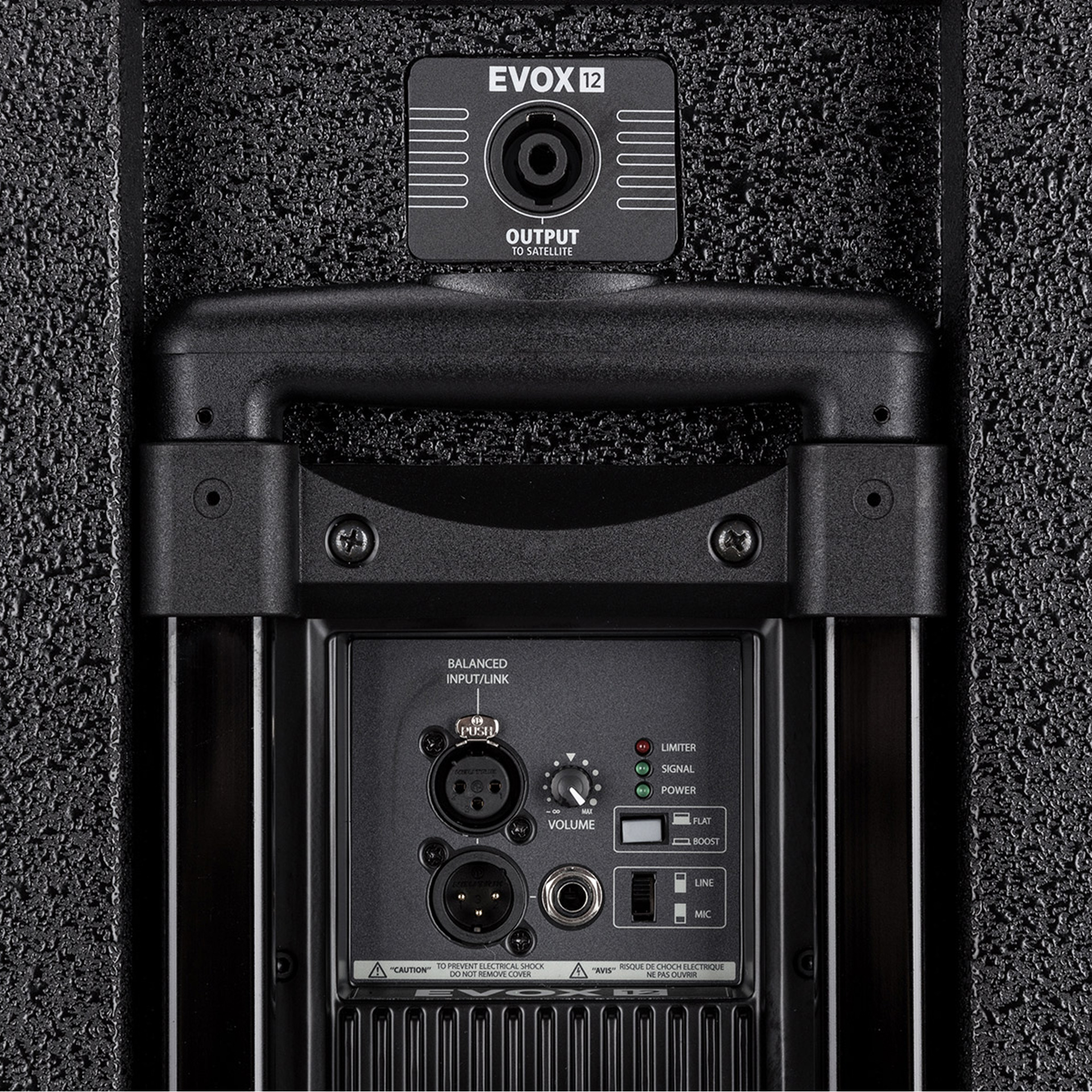 EVOX 12 — это двухполосный комплект звукоусиления, который состоит из активного сабвуфера и пассивного сателлита в виде звуковой колонны. Система является топовой моделью линейки Evox и оснащена восемью 4-дюймовыми широкодиапазонными динамиками в сателлите и 15-дюймовым низкочастотным динамиком с в сабвуфере с корпусом фазоинверторного типа. Данный комплект предназначен для сольных музыкантов или групп, диджеев и прокатных компаний. Также данная система подойдёт для озвучивания различных корпоративных мероприятий и конференций.