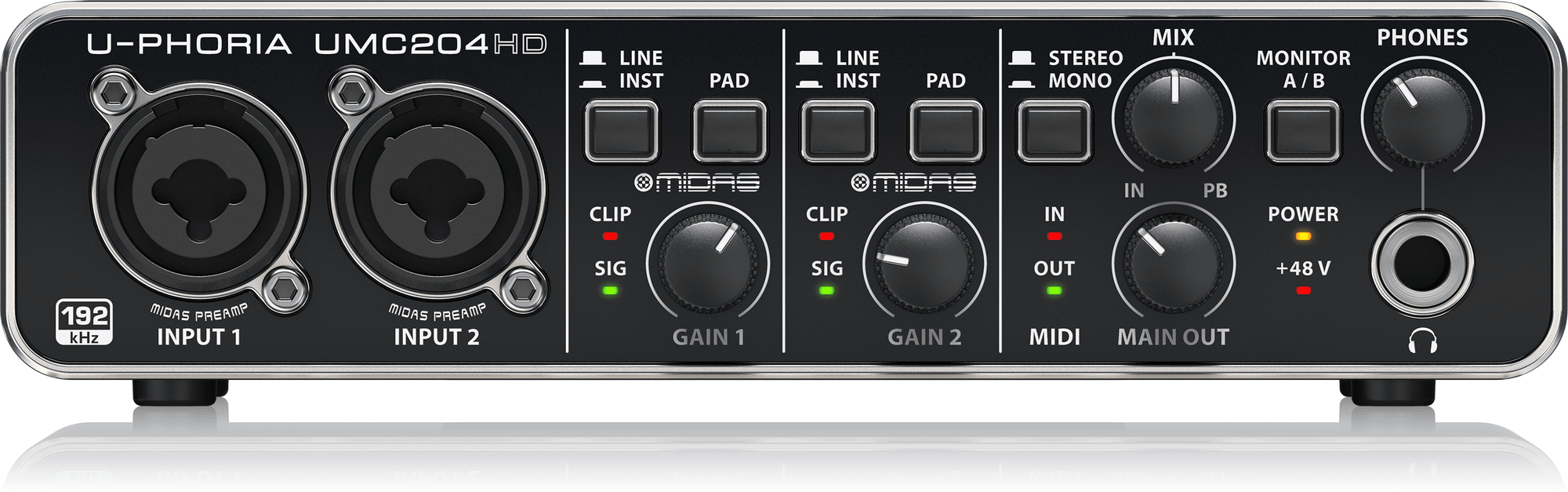 В UMC204HD есть возможность прямого мониторинга с нулевым уровнем задержки, что дает возможность пользователю слышать свое исполнение чистым без задержки или запаздывания во время возврата сигнала. В результате исполнение еще лучше и запись безупречна. Выход phone имеет собственный регулятор уровня, а с помощью кнопки Monitor можно выбирать А/В источник для DJ-га.